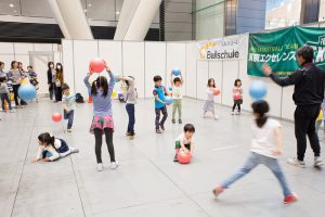 小川が担当するスポーツエリアでは、ニューバランスさん、東京エクセレンスさん、バルシューレさんの3団体が時間ごとに入れ替わって体験教室を開催。